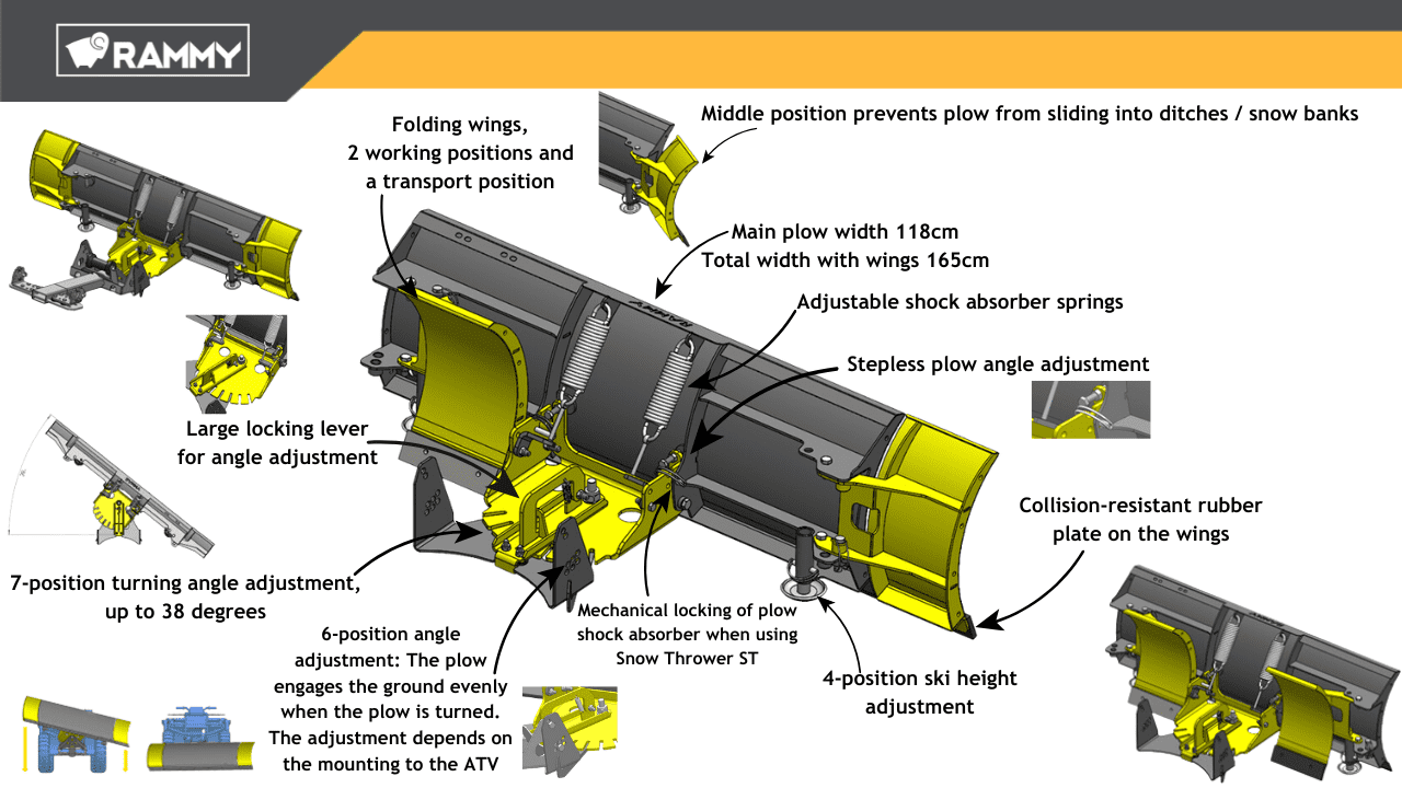 Rammy Plow W165 ATV PRO (74131543, with 1-pipe adjustable accessory frame/front mounting):