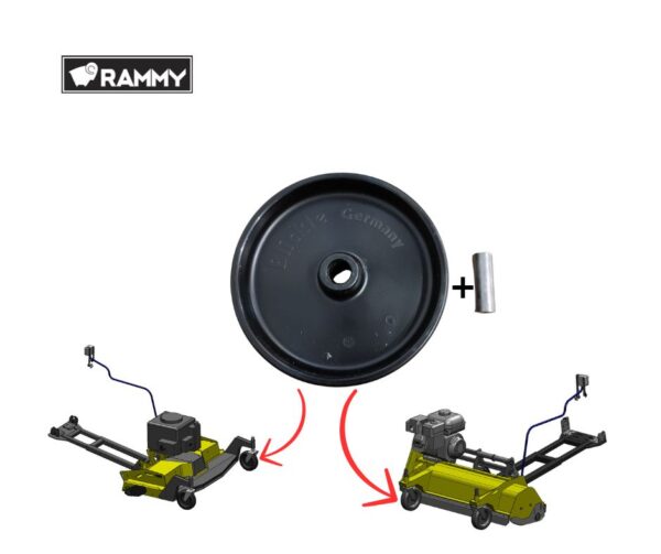 74130498 Wheel + sleeve. Flail mower 120 ATV & Lawn mower 120 ATV PRO, outside diameter 200 mm.