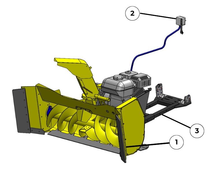 The Rammy snowblower is a ready-to-use package. Snowblower, remote control and adjustable accessory frame.