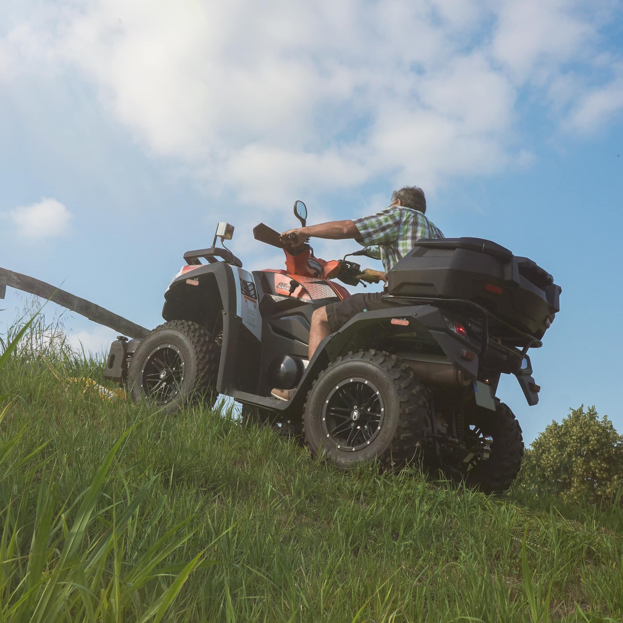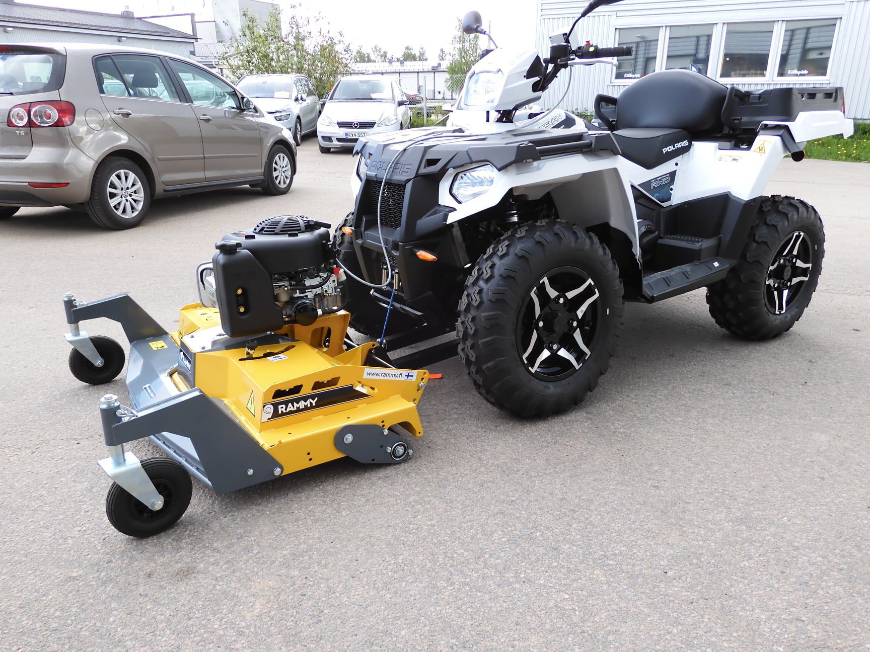 Rammy er foran ATV-en, så synligheten og håndteringen er stor. Klippehøydejustering 2-10 cm med forhjul og bakrulle. Enda høyere med vinsj, opptil 30 cm.