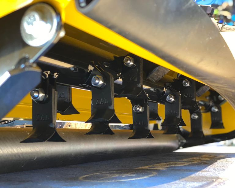 | Leikkausterä | Y-terät 44 kpl vakiona yleiskäyttöön. Lisävarusteena vasaraterät 22 kpl viimeisteltyyn leikkaukseen. Terät väistävät kiviä, puita ym. Rummun pyörimisnopeus 3000 r/min. |