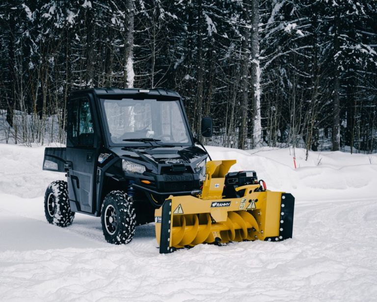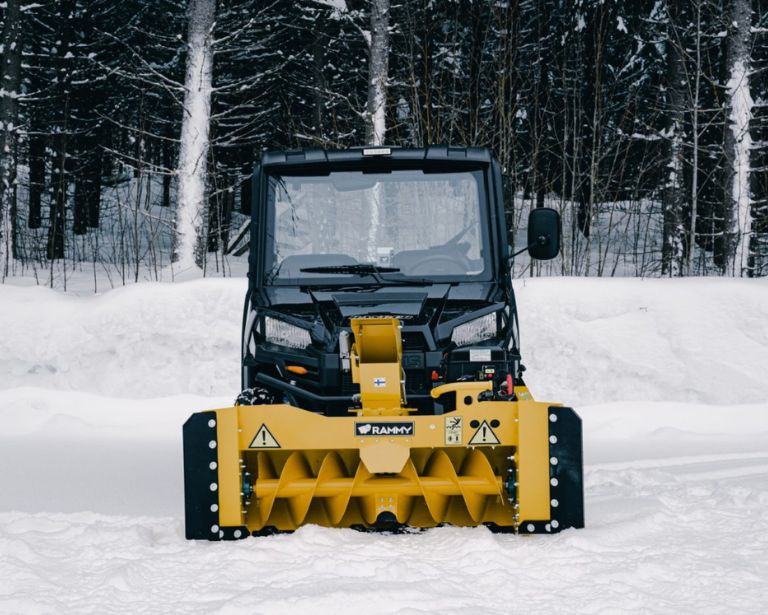 Rammy Snowblower 155 UTV är en 155 cm bred snöslunga med en 306 cm3 motor. Snöslungan passar både små gårdar och en lång stigar. Rammy snöslunga är kompakt, så din ATV eller UTV förblir god och smidig. Fungerar även i våt snö.