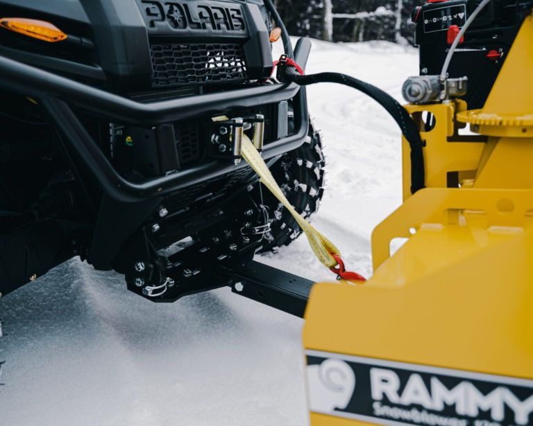 Den ställbara ramen gör att snöslungan passar i stort sett alla 4×4-fyrhjulingar. Om snöskovelns CENTERMONTERINGSSATS sitter på undersidan av fyrhjulingen, passar Rammy i dina befintliga fästen.